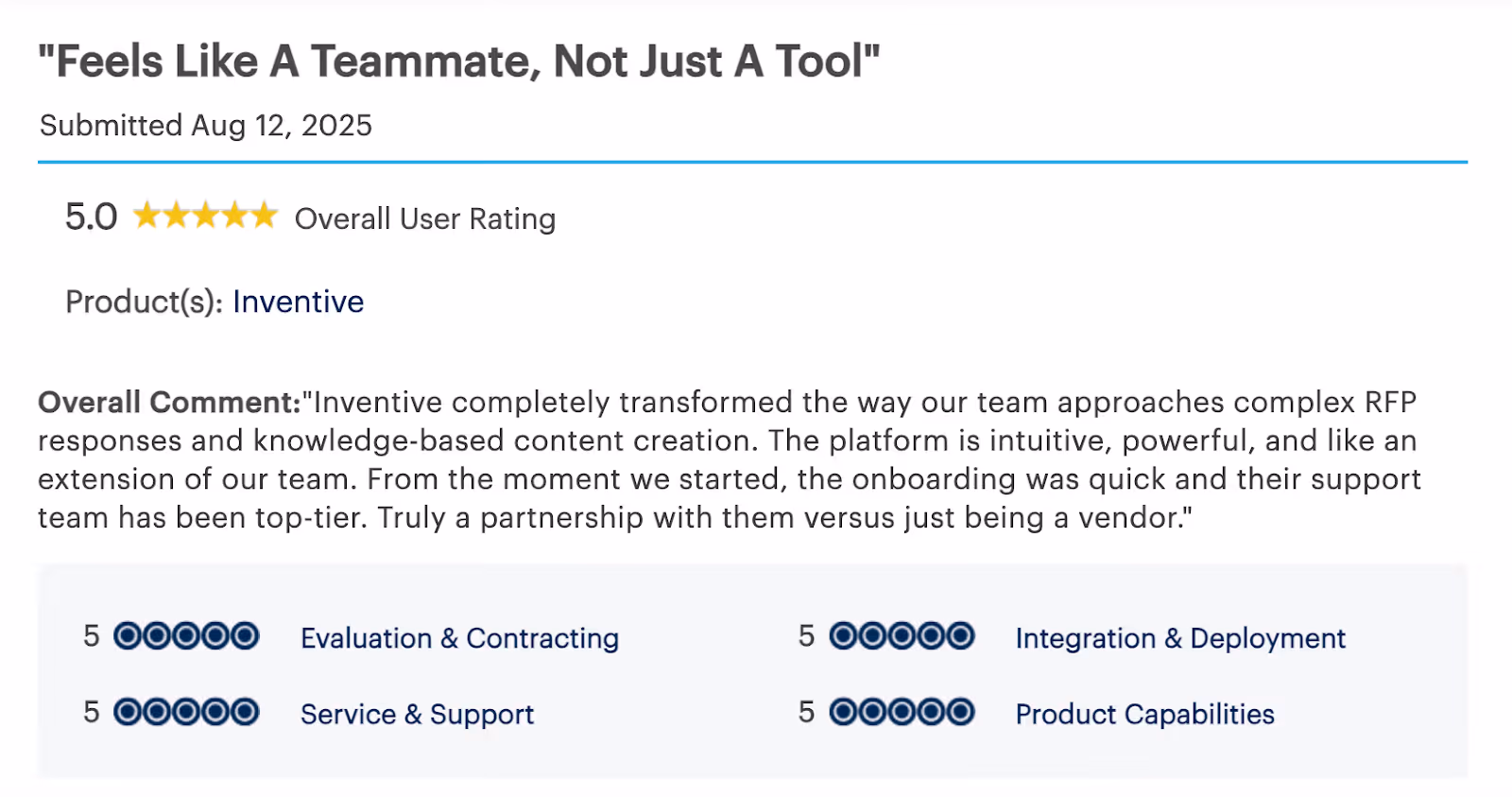 Inventive AI is designed to reduce that load and leads with one principle: better answers = higher win rate. That is why response quality matters more than pricing or surface-level features.