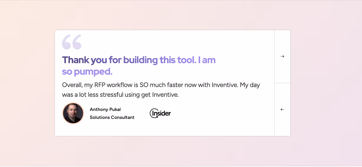 Inventive AI connects directly with existing content systems and allows teams to start generating responses within hours.