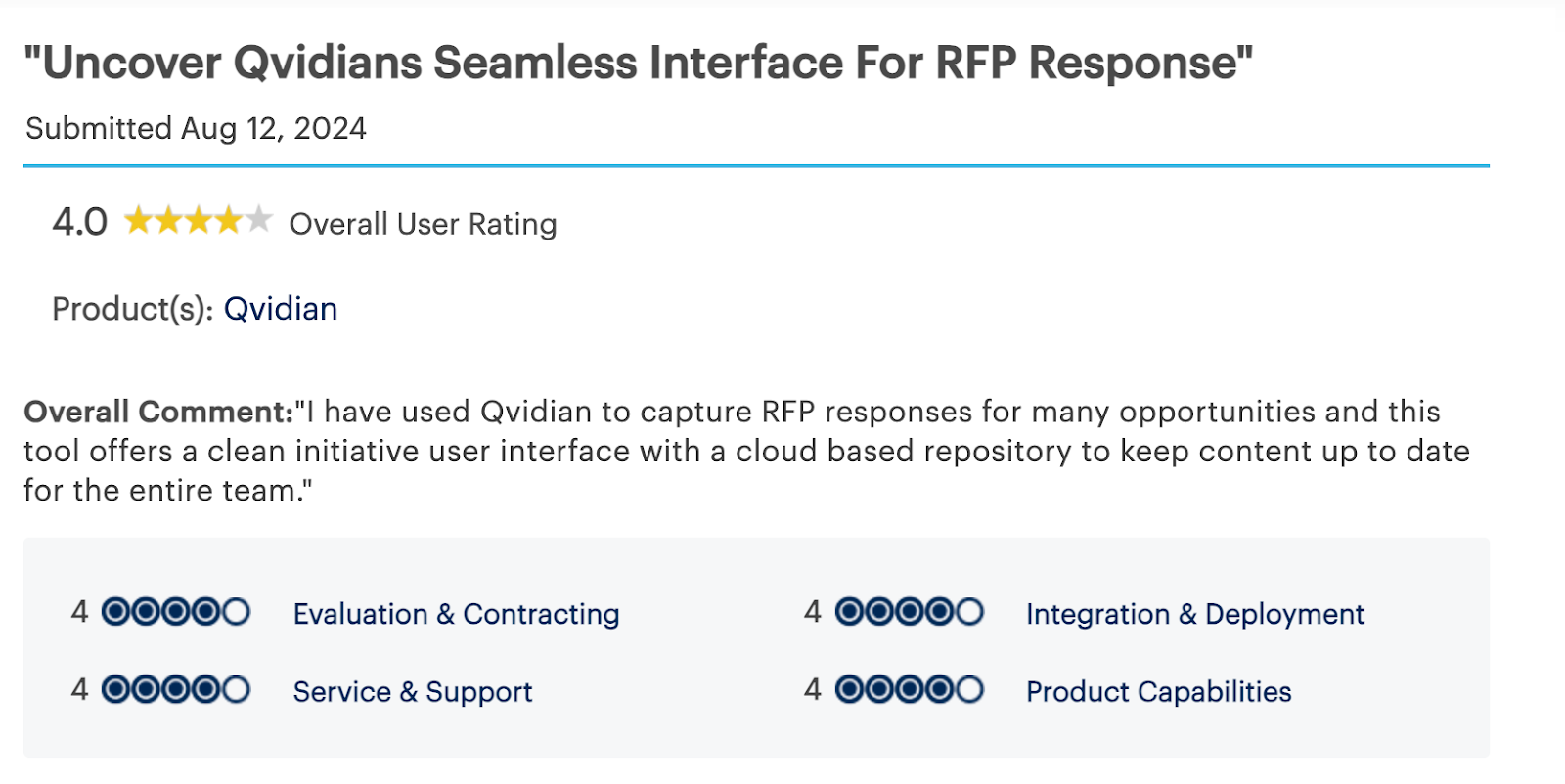 It is a dependable legacy platform, but vendors looking to respond faster and with greater contextual accuracy may find it less agile than modern AI-powered RFI tools.