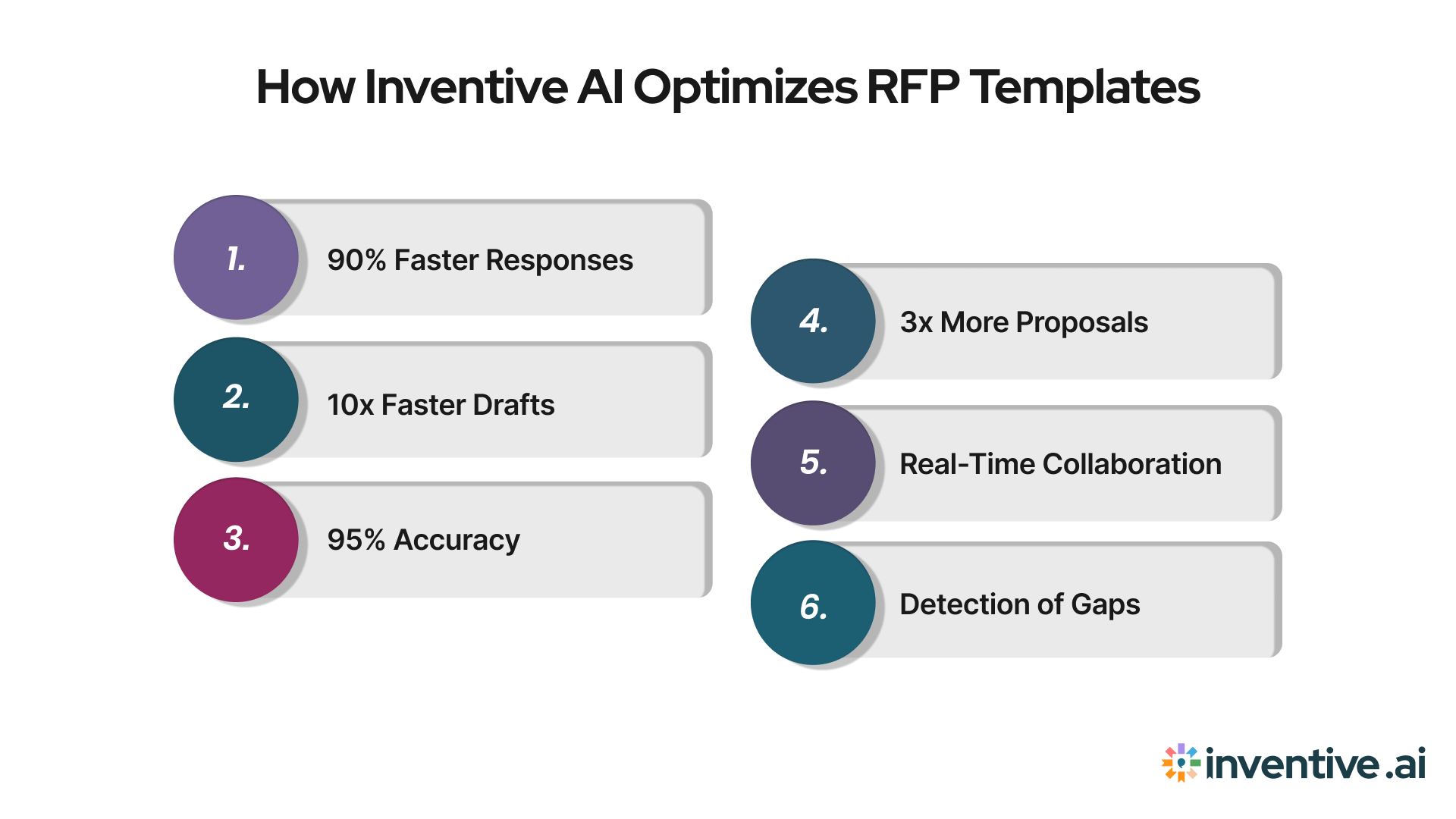 Ultimately, templates increase competitiveness. By improving efficiency and consistency, sales teams can respond to more RFPs, deliver higher-quality proposals, and accelerate deal velocity. Industry research suggests that organizations using structured RFP processes see up to a 10–15% improvement in win rates, giving them a clear revenue advantage over competitors.