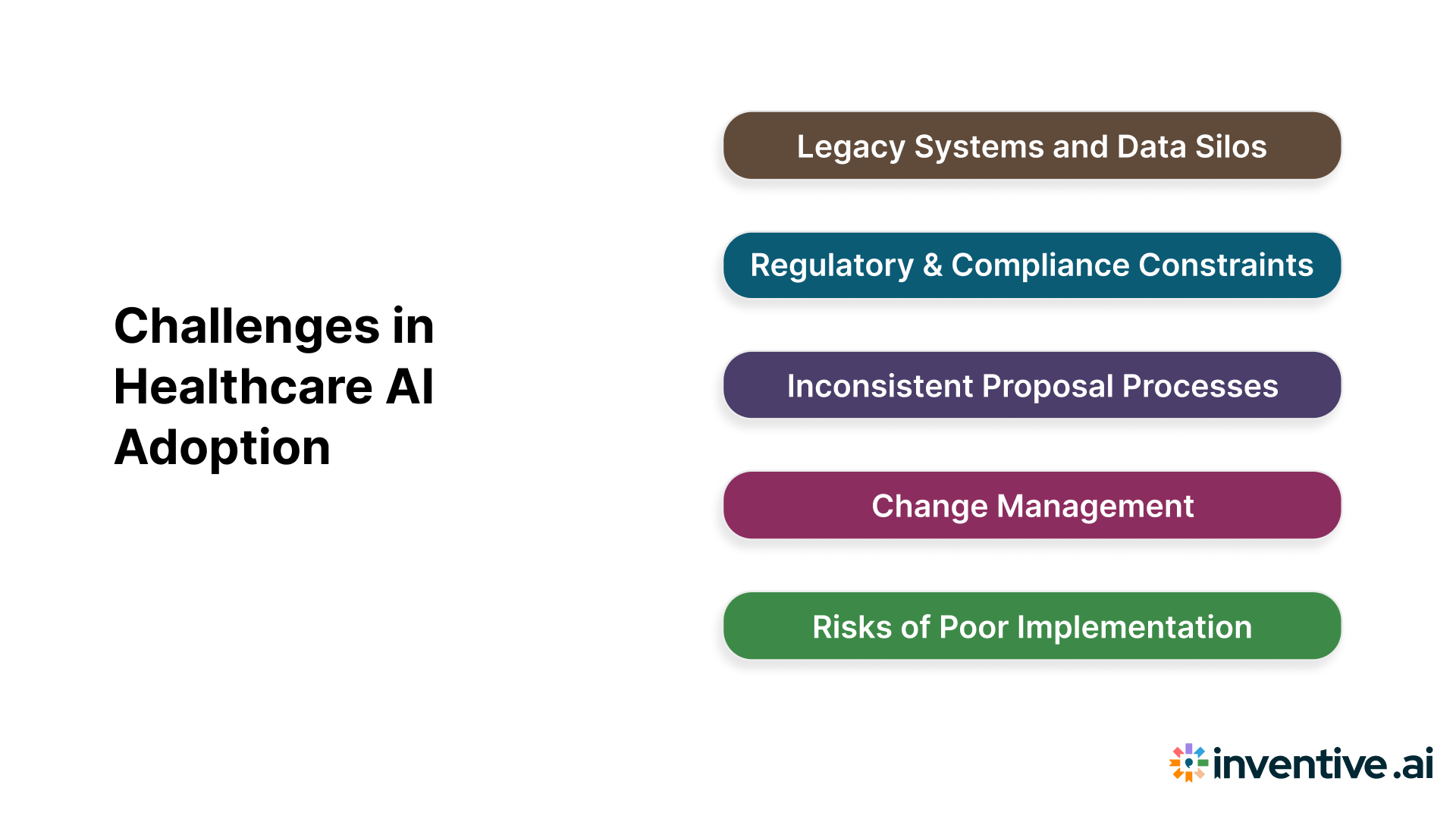 - AI identifies content gaps and recommends responses based on winning patCurrent Challenges in Healthcare AI Adoptionterns in prior proposals.