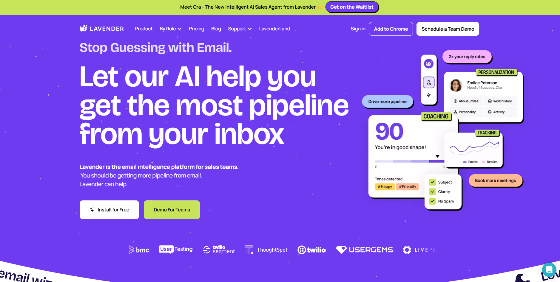 Lavender brings AI-driven coaching to outbound communication. It helps sales engineers and solution consultants write clearer, more personalized emails to prospects and clients. But, its scope is limited to communication enhancement, not RFP automation or engineering-focused workflows.