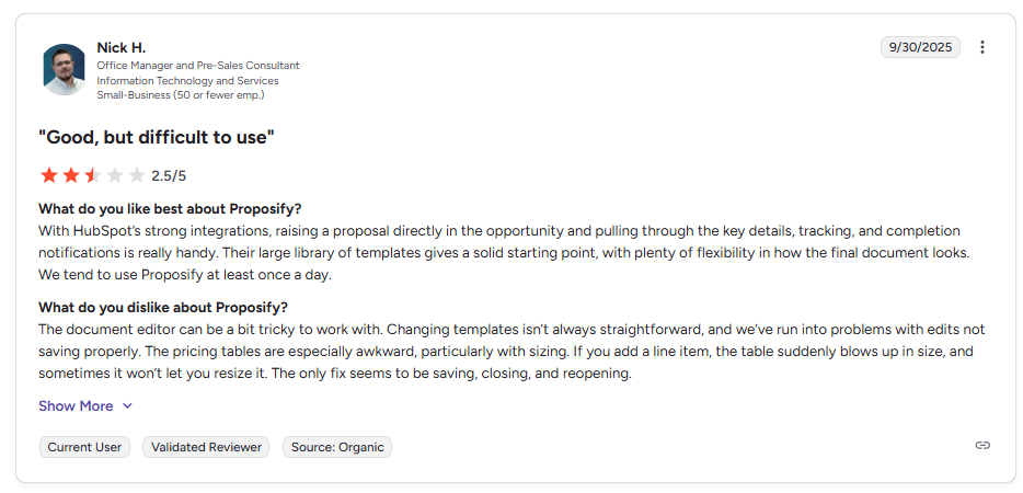 - Formatting Issues: Some users have reported occasional formatting issues when exporting proposals. This can result in inconsistencies in proposal layouts, requiring teams to spend extra time correcting the formatting.