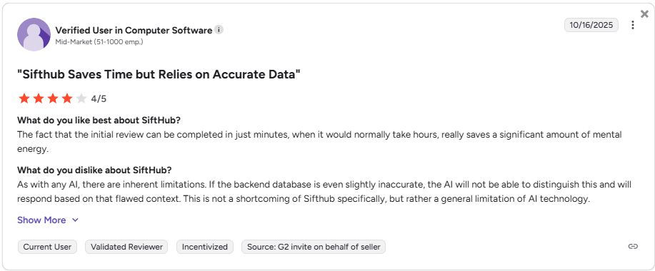 - AI Limitations: The AI capabilities of SiftHub are not as advanced as those found in some competitor platforms. This can result in less accurate or contextually relevant responses, which may affect the overall quality of proposals.