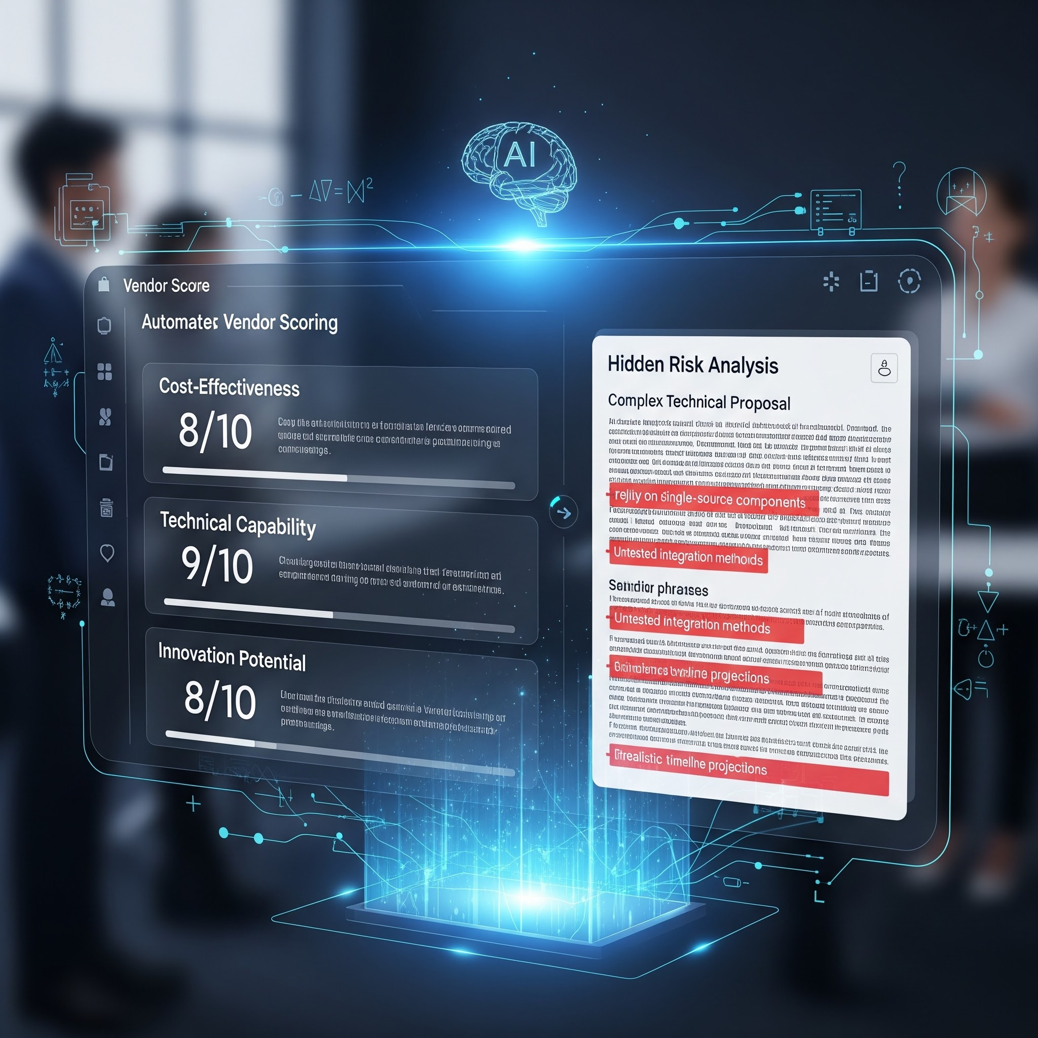 - Algorithmic Conflict Detection: AI can autonomously cross-reference a vendor's claims across their entire proposal. If a vendor claims to be "platform agnostic" in their executive summary but exclusively proposes a proprietary architecture in their technical diagrams, the AI instantly flags this logical contradiction for the procurement team.