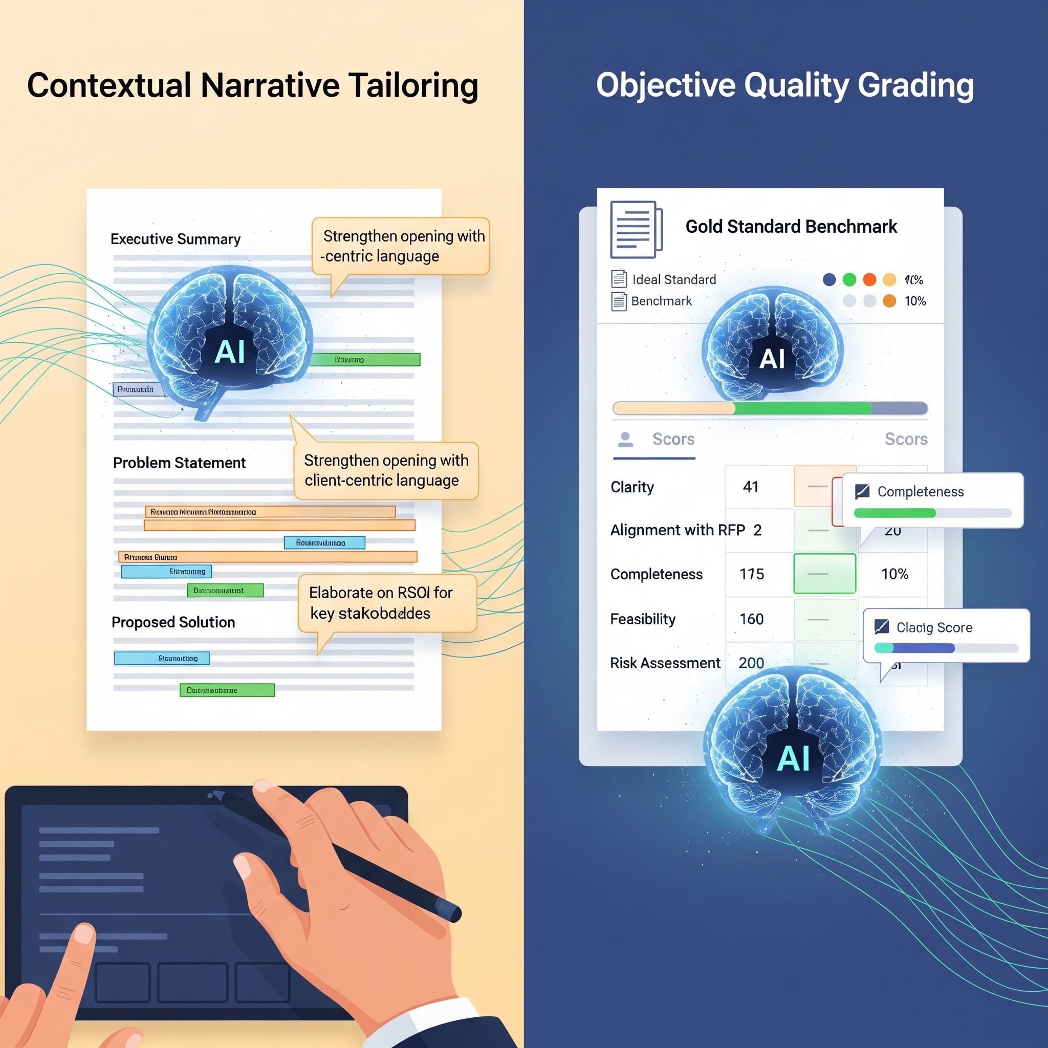 - Predictive Quality Grading: The platform's ability to objectively score drafts against winning standards, rather than simply checking if a question has been answered.