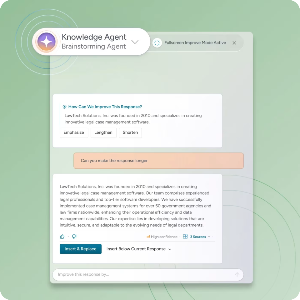 From qualification to final submission, AI agents help teams research requirements, collaborate across departments, refine responses, and deliver stronger proposals faster.